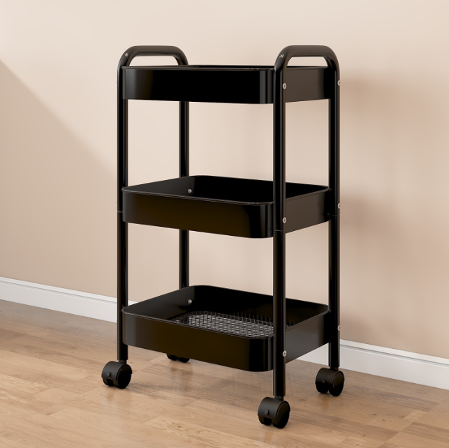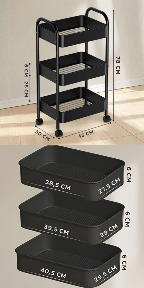 Завдяки трьом ярусам ви зможете організовано зберігати побутові дрібниці, книжки, засоби гігієни, іграшки, спеції або кімнатні рослини. Металевий каркас і якісний пластик гарантують довговічність, а коліщатка забезпечують легкий і плавний рух етажерки навіть у вузьких просторах.